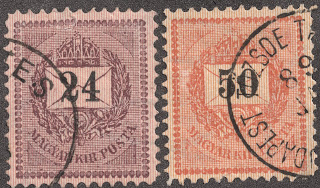 The Scott 2011 Classic Specialized catalogue has, from 1871-1916, 103 major numbers for regular issues. There are, however, 135 minor numbers, mostly different perforations, although differences in watermark are also found. These minor numbers are fully as important for Hungarian philately as the major numbers, and will be treated as such here. In fact, the Deep Blue (Steiner) album provides spaces for most of these "minor" numbers. In addition, there are 52 semi-postals during this era that will also be included in the survey.
