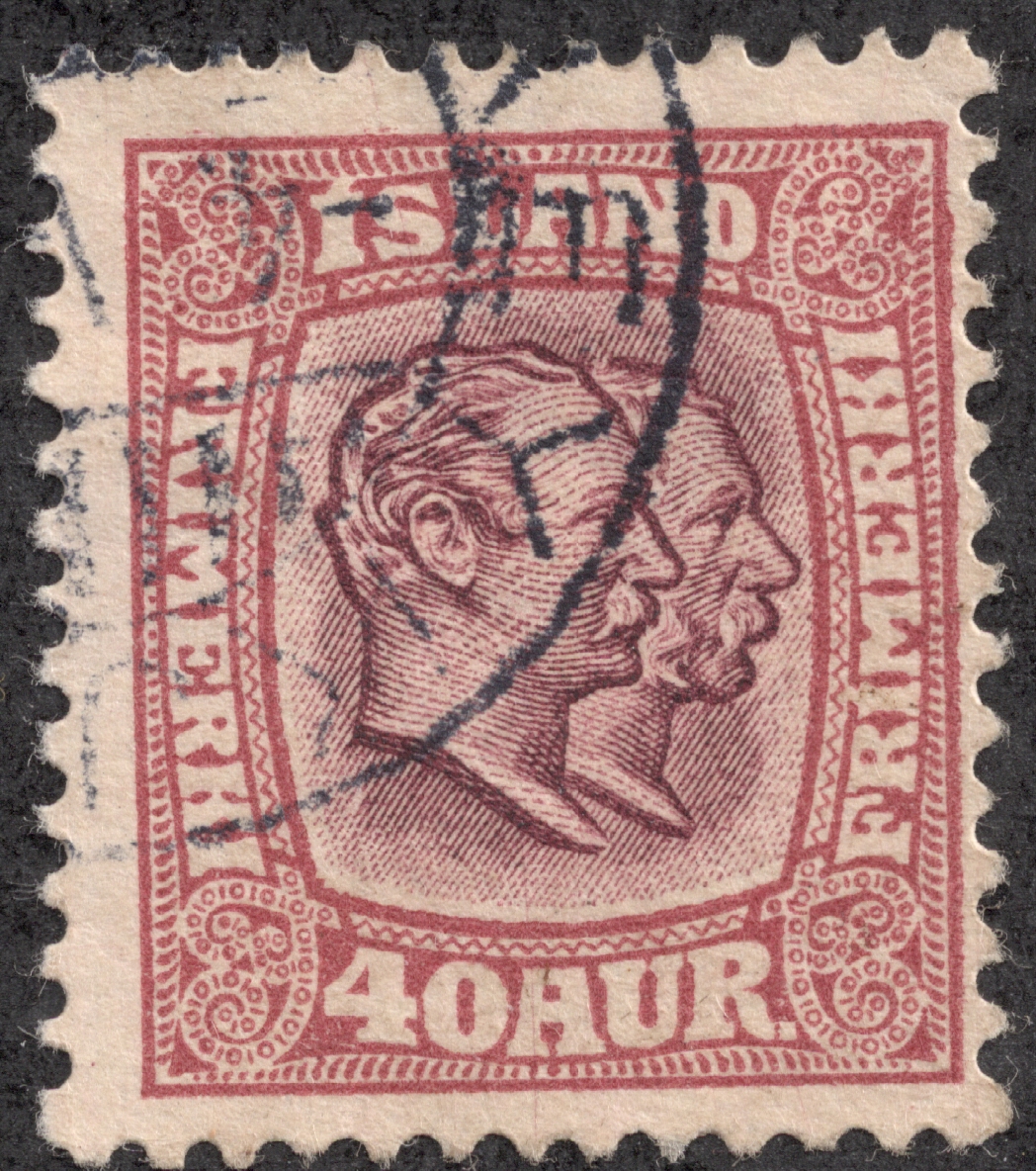 The Danish King Christian IX ruled Iceland also, and, beginning in 1902, a thirteen stamp bi-colored issue was produced with his portrait. CV for 7 stamps is $1+-$8+.