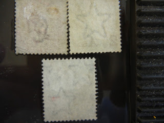 The watermarks found on the Queen Victoria's, the Edward VII, the George V, and the George VI stamps are shown above. I am quite taken with the "Elephant's Head" watermark. ;-)