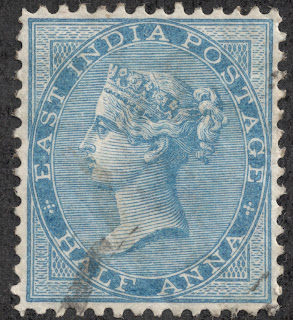 The East India Company was still in power in India, when the first stamp issue was produced in 1854. The first six stamps were imperforate, and all had various designs featuring the Queen.
