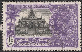 Especially nice in comparison to the generic issues for other colonies, are the "Silver Jubilee" stamps found for India. This 7 stamp set with various edifice scenes of India, has a CV of <$1-$6.