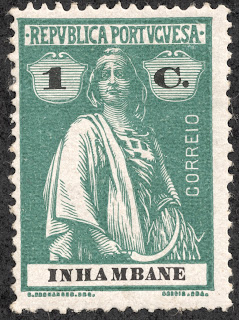 The first non overprinted issue for Inhambane was in 1903, and had the familiar Portuguese colony image of "King Carlos". This 16 stamp set has a CV of <$1-$1+ for 9 stamps.