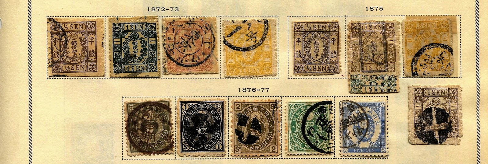 The second Japanese issue, called the "Cherry Blossoms" was issued between 1872-75. There are forgeries known for these stamps, so one has to be careful.